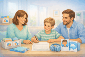 Järjestä perheen tai työtiimin kanssa viikoittainen palaveri, jossa jaatte tehtäviä ja resursseja. Näin voitte tukea toisianne ja vähentää yksilöllistä kuormitusta.